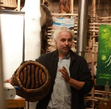 Chris lives in The Vale of the White Horse, England. Settled on an organic farm with his family, he maintains a simple life through arts & crafts and varying projects. His wide ranging work includes – beekeeping, skep-making, apitheraphy, traditional crafts, experimental archaeology, bronze & iron age are construction, sculpture, performance, folk music and storytelling, druidry, ritual and ceremony, lecturing and teaching. Chris Park is the world's leading expert on bee skeps and teaches skep-making for the British Beekeeping Association, the National Honey Show and is a founder member of the Beekeeping History Trust.
